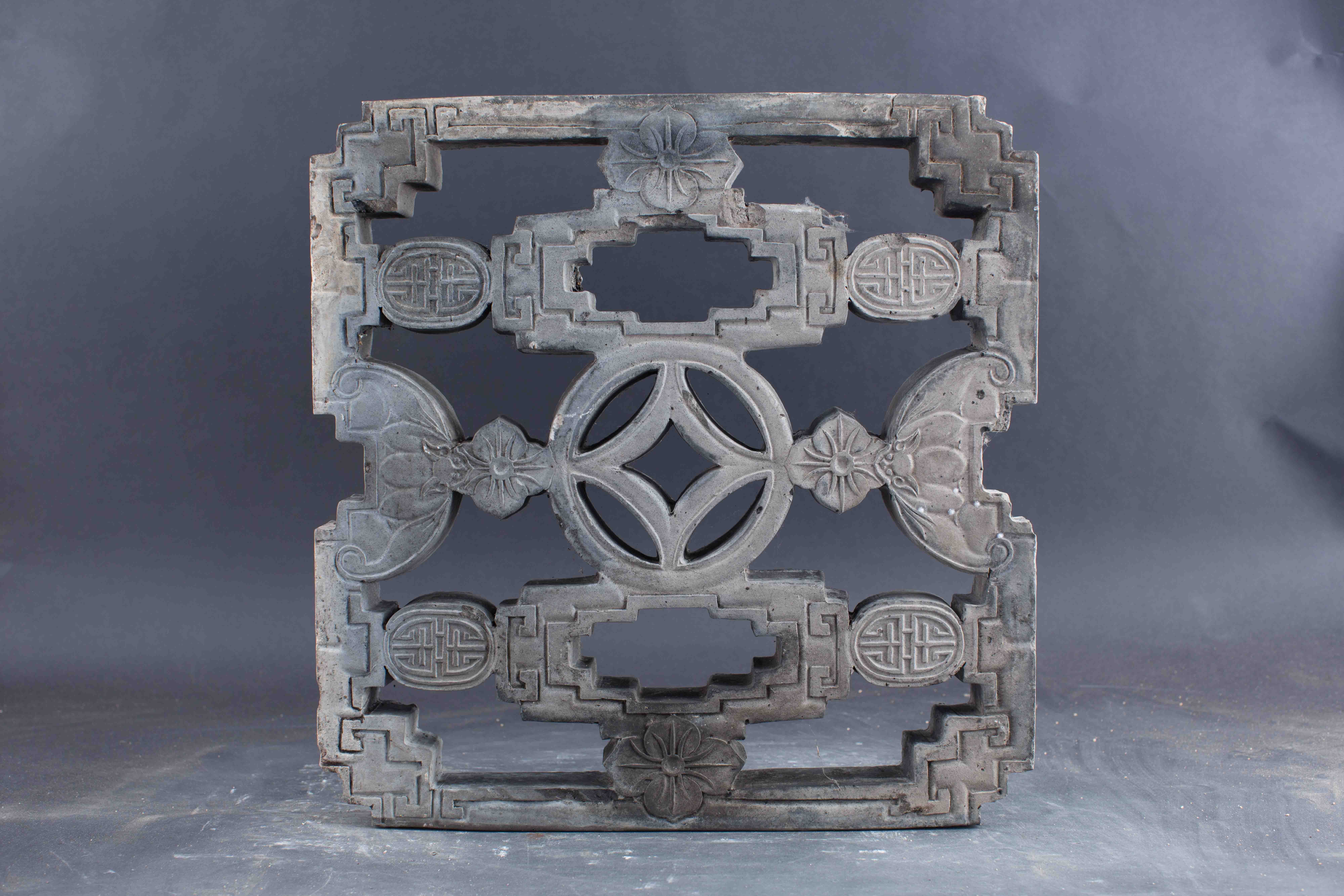 中华民国蝙蝠铜钱花草寿字纹陶花窗-16