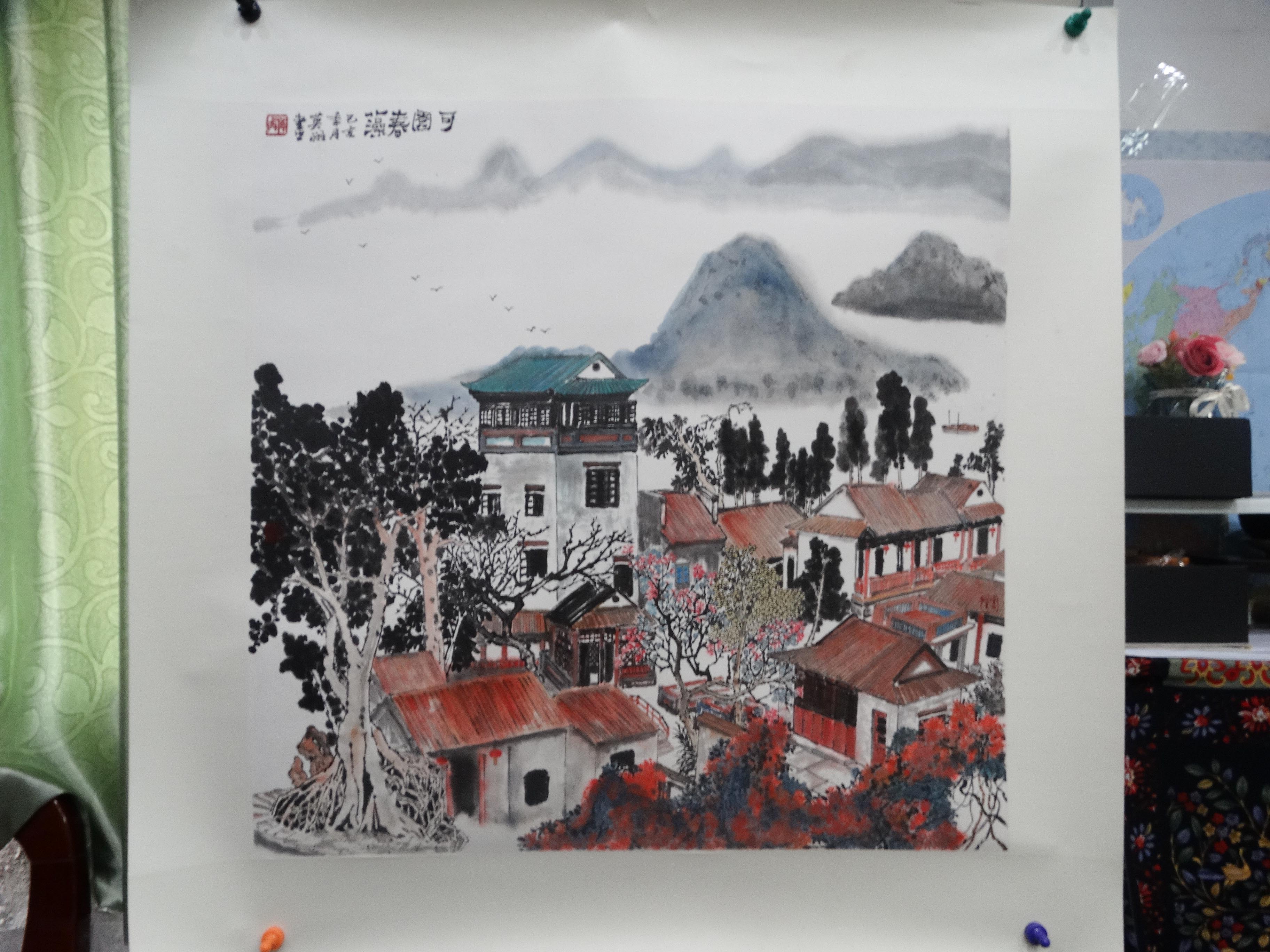 岭南庭园惯用的套色玻璃画,在这里得到了普遍采用。它采用红、蓝、白、黄相间的十字形窗心,色彩缤纷,使室内外景物增加光影的变化。玻璃上还刻制有居巢的字,更显示其名贵,也说明园主人与居巢有深厚的情谊。