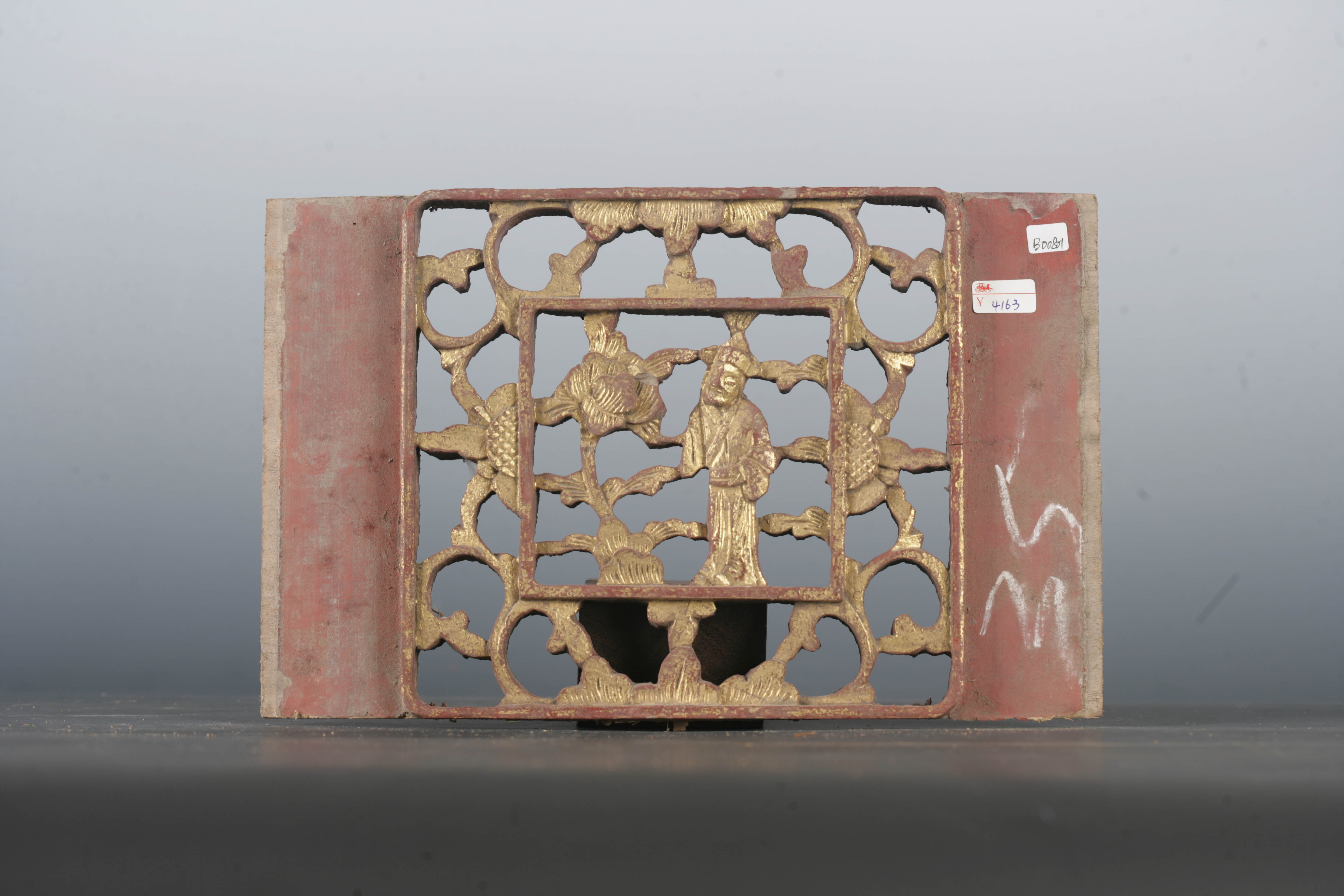 清金漆木镂雕人物花卉纹花板-2