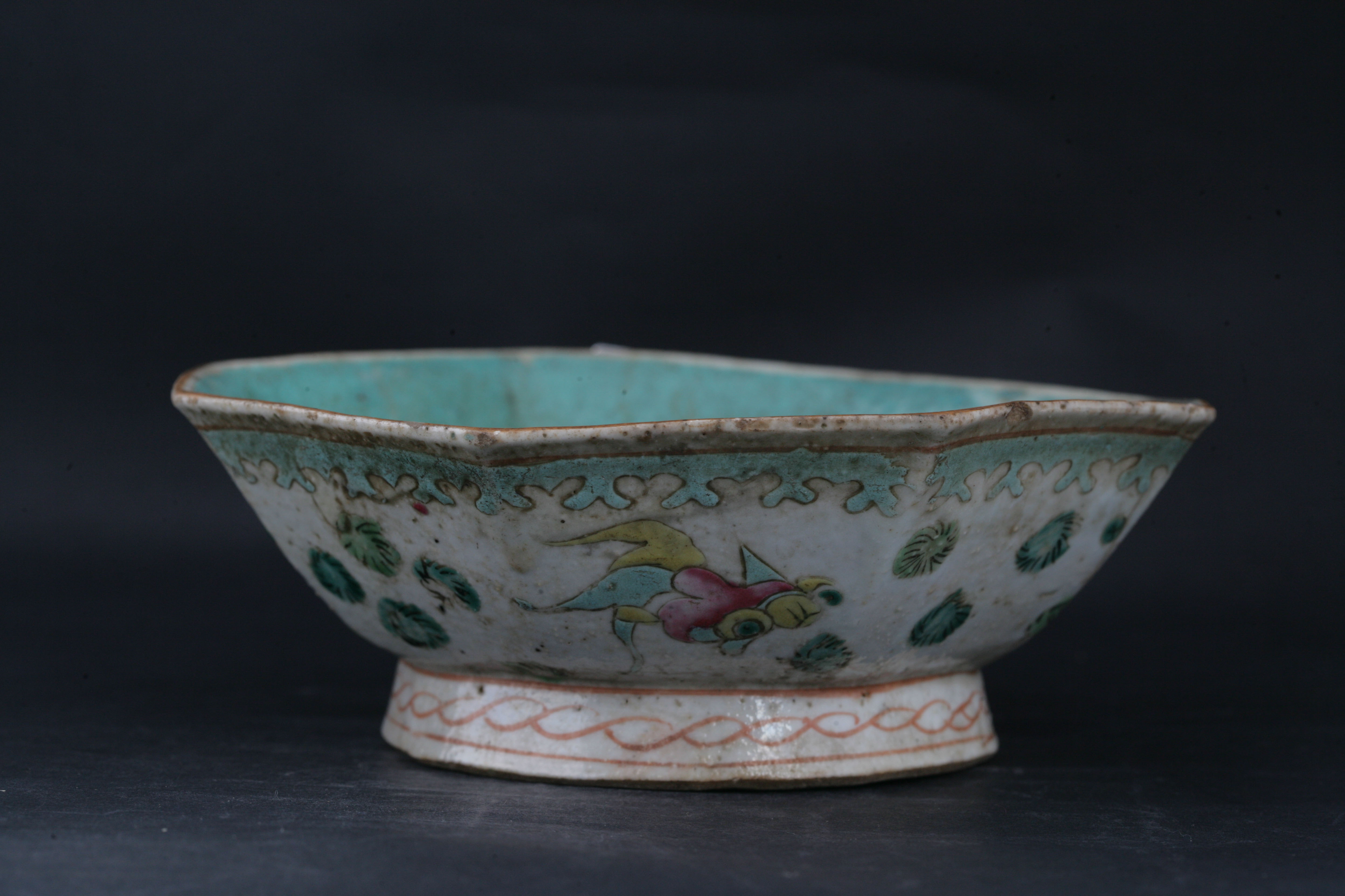 清粉彩鱼藻纹八角碗