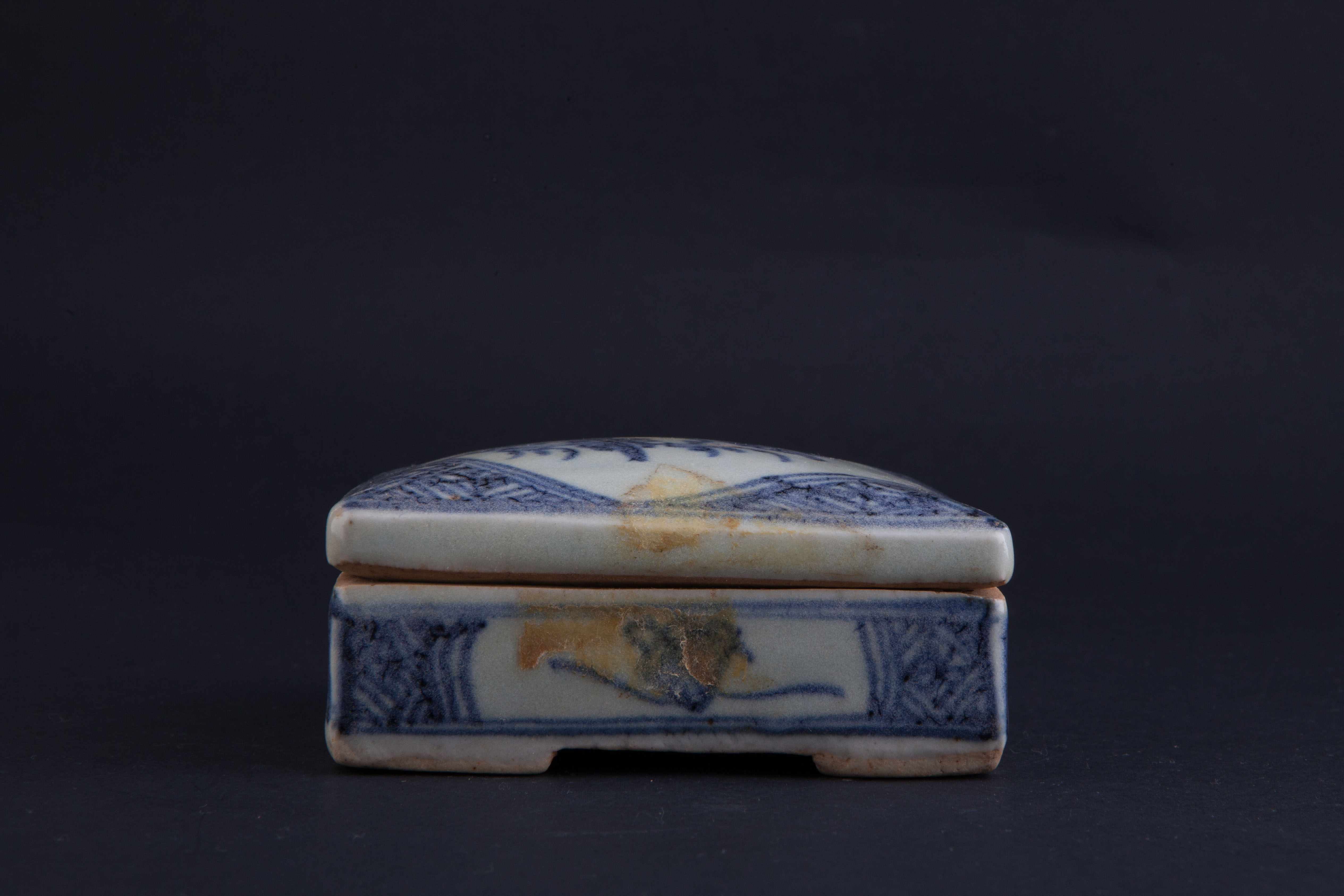 清青花花卉纹方印套盒