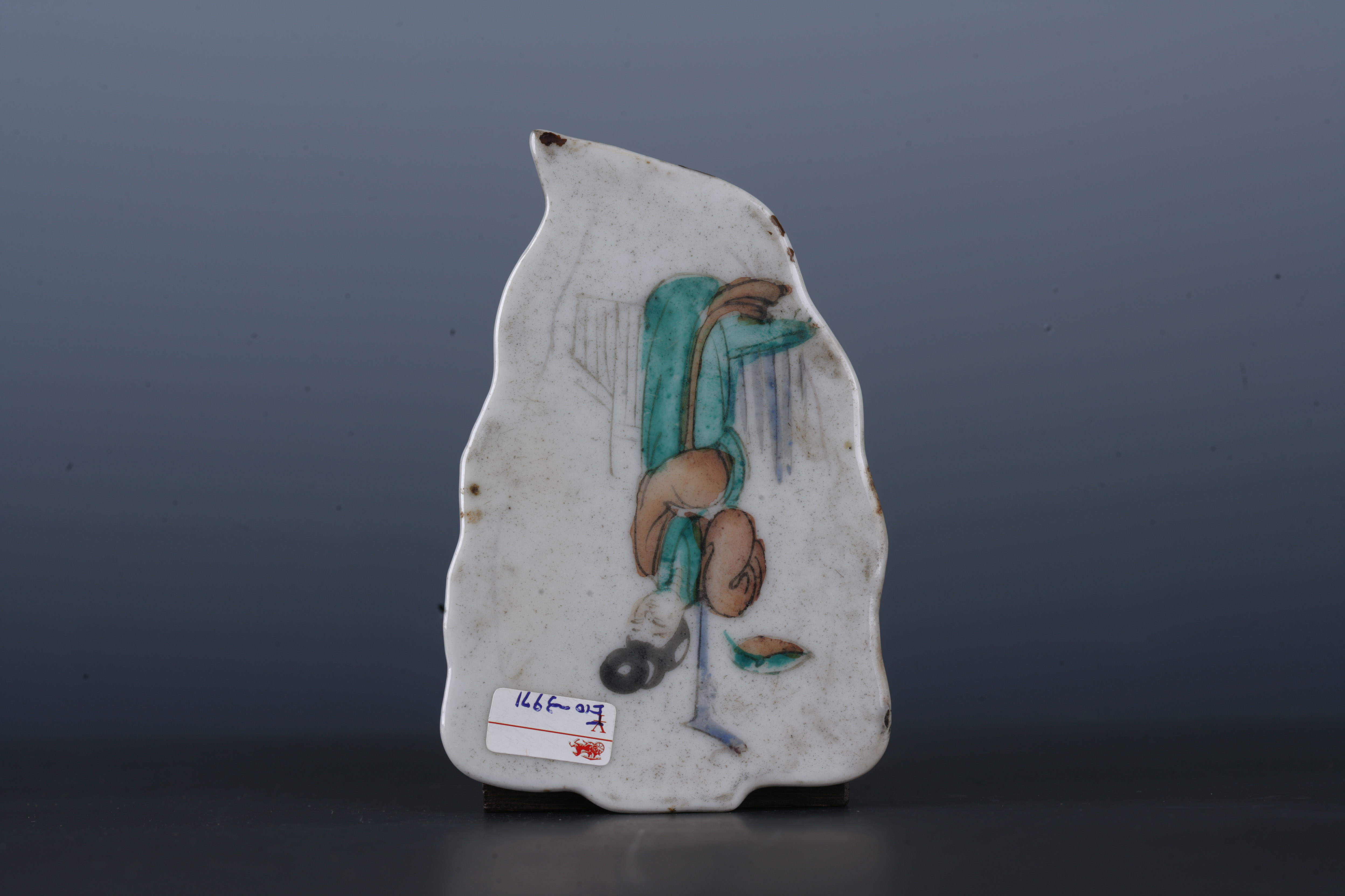 中华民国粉彩仕女纹蕉叶形瓷板-4